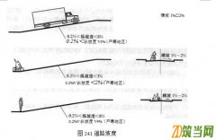 1 ) 基地地面坡度不應小于 0. 2%, 地面坡度大于 8% 時宜分成臺地,臺地連 接處應設擋墻或護坡。 2 ) 基地機動車道的縱坡不應小于 0.2%, 亦不應大于 8%, 其坡長不應大于 200m, 在個別路段可不大于 11%, 其坡長不應大于 80m; 在多雪嚴寒地區不應 大于 5%, 其...
